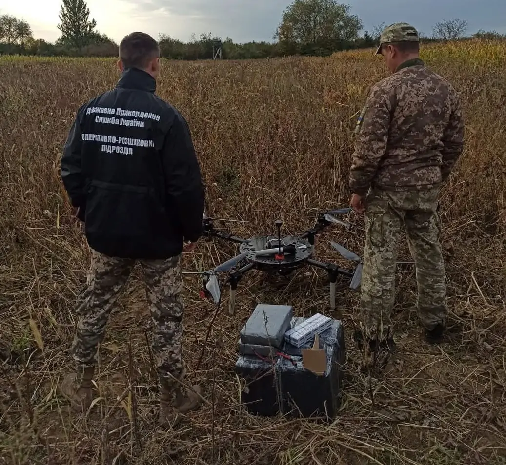 Később, a határtól 200 méterre, a bokrok között a kutatócsoport egy nagy teljesítményű quadcoptert talált, amelyhez egy kartondoboznyi cigarettát kötöttek.