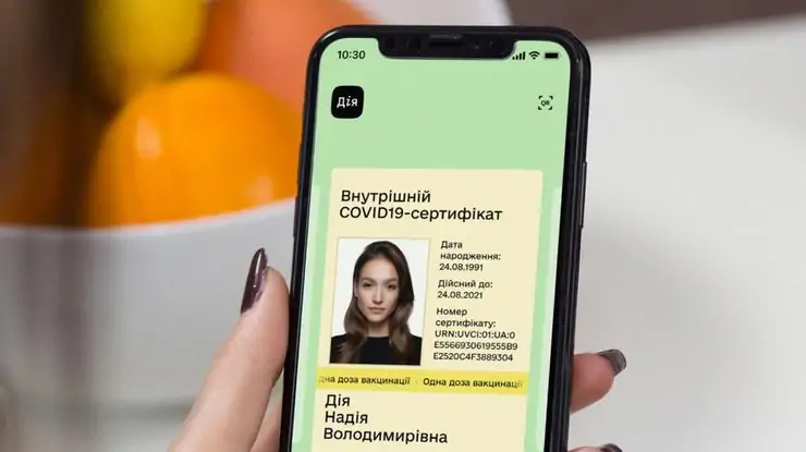 Ukrajnában a koronavírus elleni oltási igazolásokat a Gyija (Дія) alkalmazáson keresztül kell bemutatni.