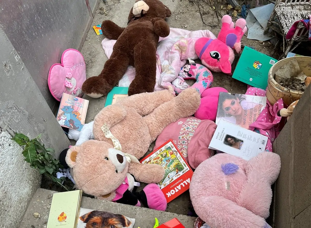 egy másik kisgyerekkel plüssállatokat dobált ki, így arra zuhant.