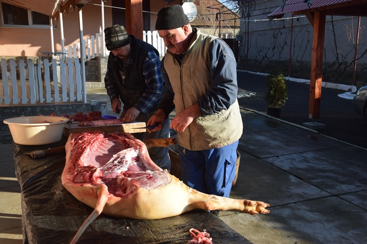 A december közepén levágott hízó a sózóból lassan a füstölőbe kerül.