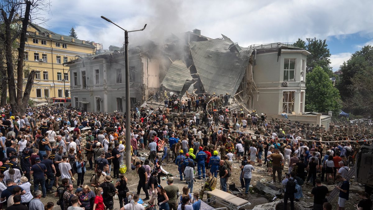 Befejeződtek a mentési munkálatok az ukrán főváros, Kijev központjában lévő Ohmatdit gyermekkórház területén, amelyet hétfőn ért orosz rakétacsapás.