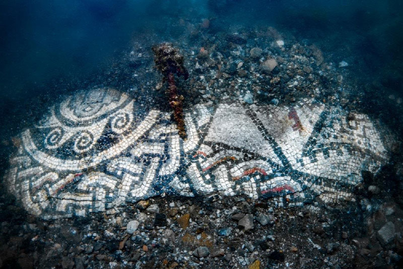 A víz alatti régészek egy csapata egy mozaikot fedezett fel a római Baiae víz alá süllyedt romjai között.