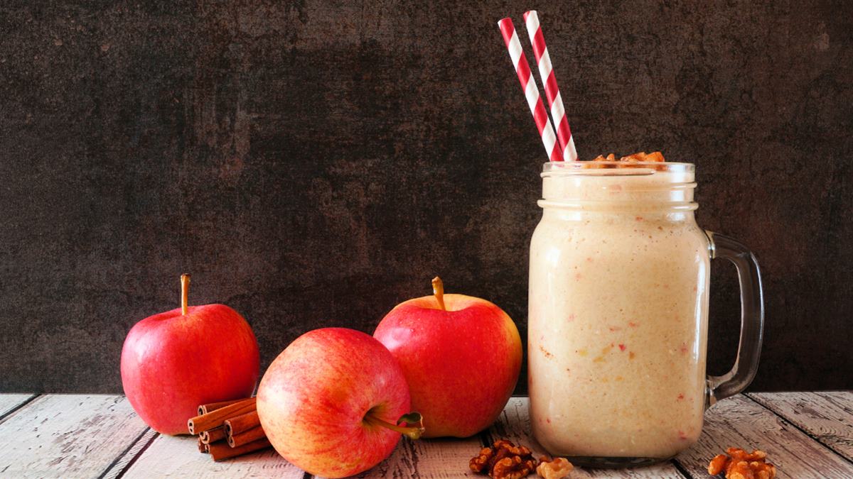 Finom almás smoothie, ami megidézi a házi pite ízét.