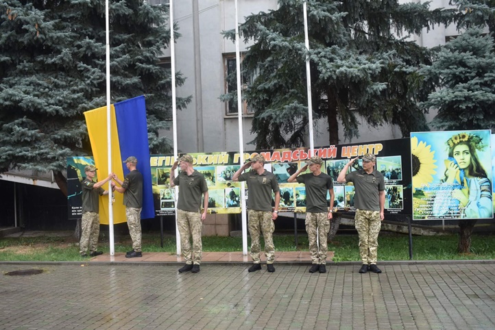 Ukrán katonák kitűzték Ukrajna állami zászlaját a fekete-tengeri Kígyó-szigeten, amit a napokban foglaltak vissza az oroszoktól