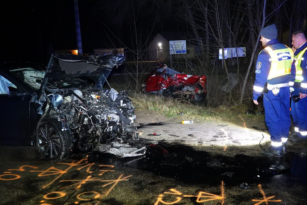 Teljesen összeroncsolódtak az autók az 5218-as úton, Kerekegyháza határában február 25-én - közölte a hirado.hu.