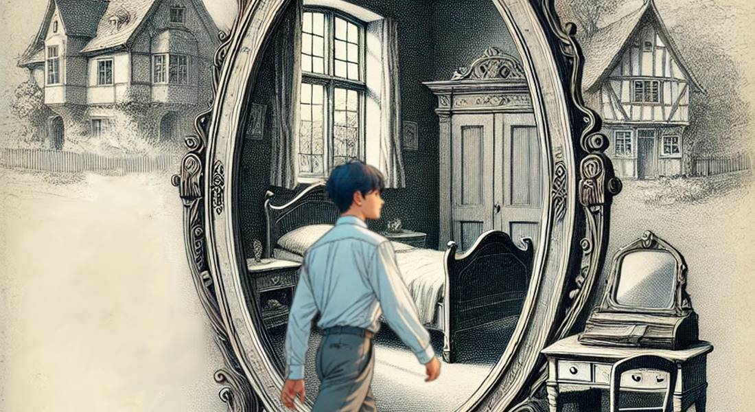 Tóth László írásának főhőse Pityu, aki az új lakásukban, egy sokat megélt régi házban szembetalálja magát a rejtélyes tükörrel. Ifjú titánunk túl közel kerül a bútorhoz, átlép rajta, s ez a mozdulat kalandok sorozatát indítja el. Kapcsolatba lép a manókkal, s egyből egy karitatív feladat is vár rá, a beteg manókislány eljuttatása a gyógyító tengerhez. Természetesen ez nem megy könnyen, megpróbáltatás megpróbáltatást követ, hogy mi is lesz a vége, ezt nem árulhatom el a naiv Olvasónak. Hősünk nem bíz semmit a véletlenre, alternatív tudományos ismereteit Párizsban gyarapítja, s végül a bimbózó szerelem is élete részévé válik.