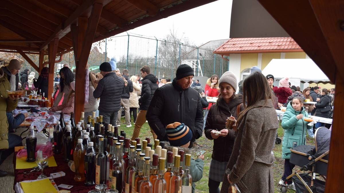 A fedett pavilon pultjára kirakták portékáikat a vidék kézművesei. Mézet, méhészeti termékeket, aprósüteményt, díszgyertyákat, illatos szappanokat, illatpárnákat, egyedi karácsonyfadíszeket ugyanúgy lehetett itt kapni, mint különböző italokat és lekvárokat. A befolyt pénzből a szervezők – a Kárpátaljai Magyar Turisztikai Tanács (KMTT) és a KMKSZ – a gyerekeiket egyedül nevelő nagycsaládos szülőket támogatják. Viszonzásképpen az adományozókat a szervezők bográcsgulyással és töltöttkáposztával vendégelték meg.