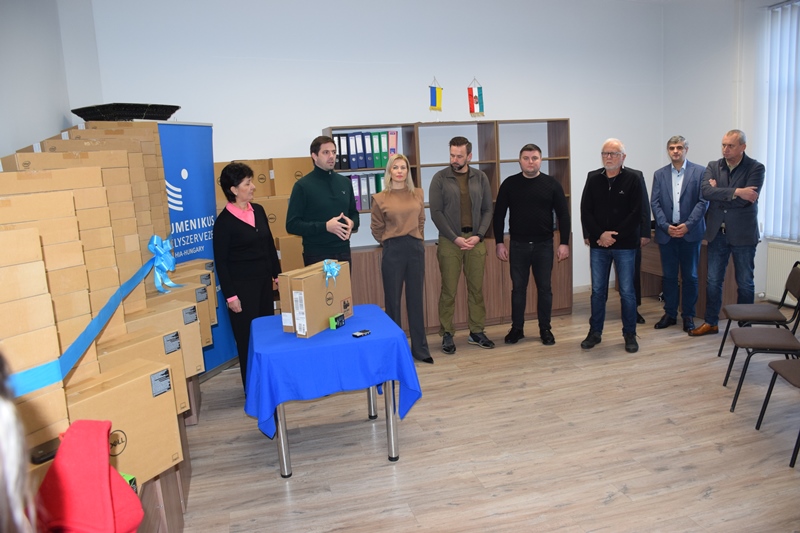 A 350 laptopból 100 a Beregvidéki kistérség magyar, illetve ukrán nyelvű tanintézményinek munkáját segíti.