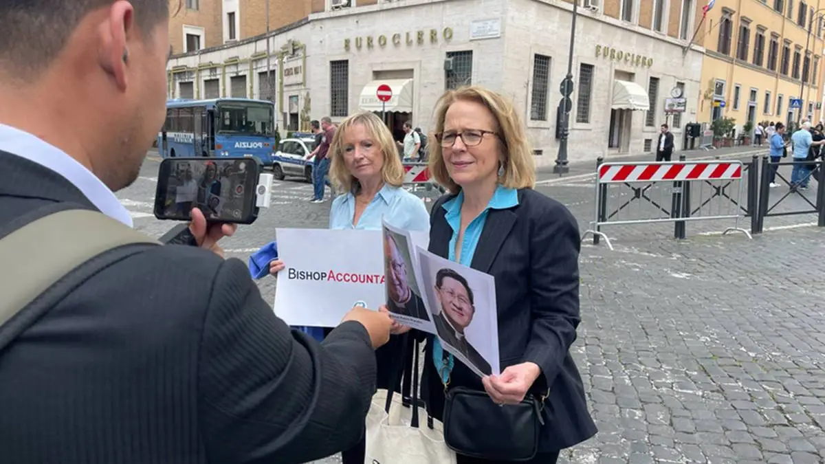 Táblákkal vonult ki a Bishop Accountability nevű amerikai civil szervezet két tagja a római Szent Péter térre a konklávé kezdete előtt pár órával, hogy az egyházon belüli szexuális visszaélésekre hívják fel a figyelmet