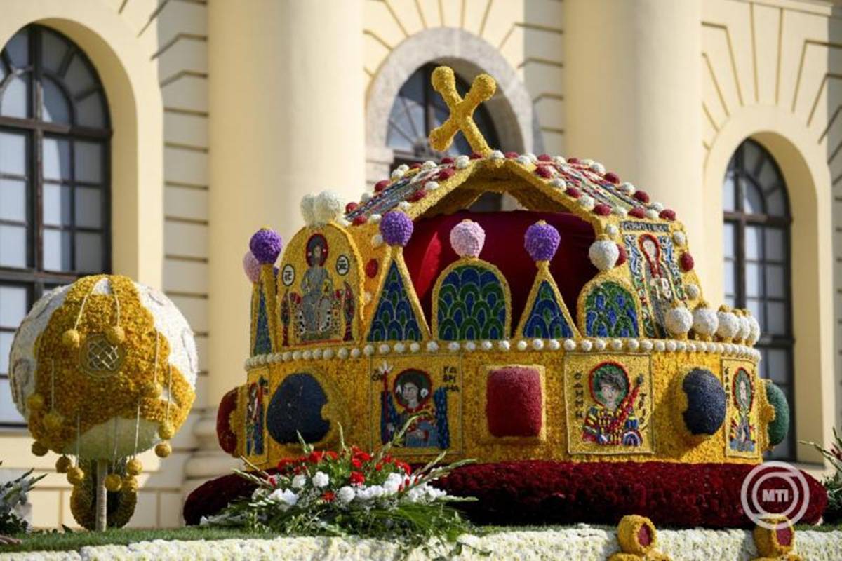 A hagyományos Nagytemplom előtti kenyérszentelés, az élményfutás és az oldtimerek felvonulását követően a karneváli menet élén ezúttal is a Szent Koronát ábrázoló kompozíció haladt, majd sorra vonultak el a mobil lelátók közönsége és az utcákat megtöltő közönség előtt a virágkocsik, köztük a művészeti csoportokkal.