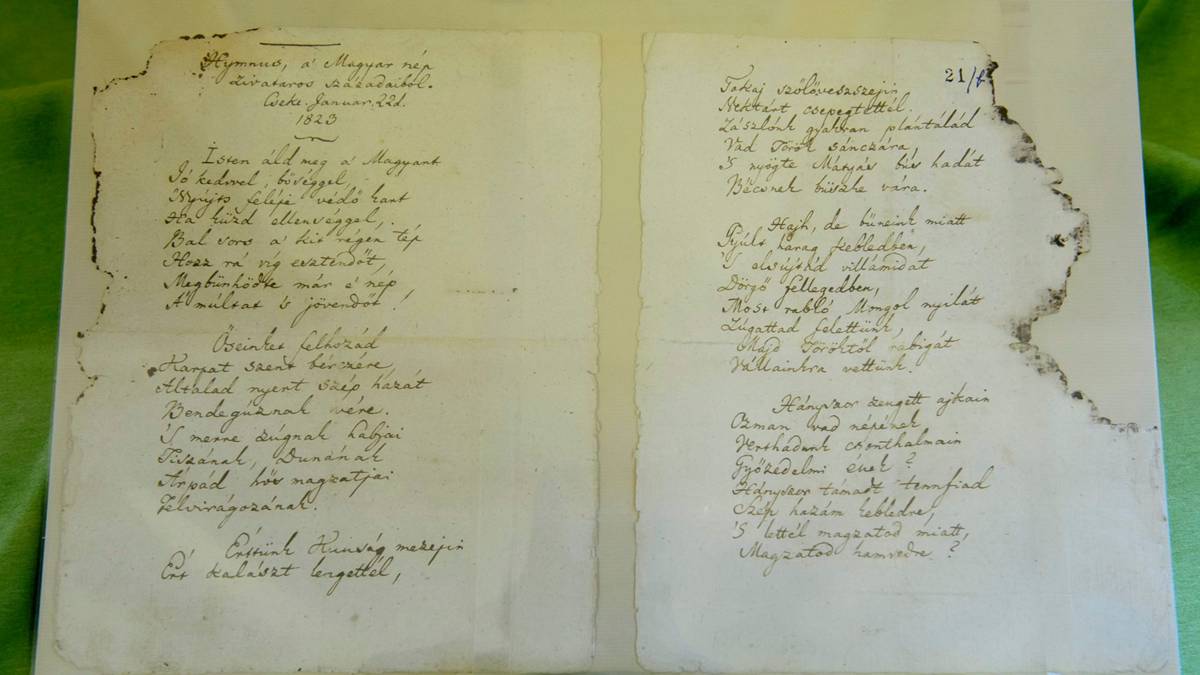 „Magyarország himnusza Kölcsey Ferenc Himnusz című költeménye Erkel Ferenc zenéjével.”