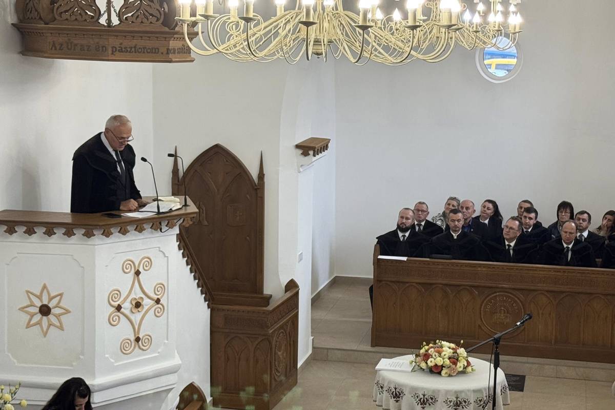 A továbbiakban Fejes-Fenyvesi Sándor röviden ismertette az Árpád-kori templom történetét, azután pedig egy részletes beszámoló következett a templomfelújításról. Elhangzott, hogy a közel nyolcszáz esztendős templom belseje két esztendő alatt teljesen megújult. A felújítás oka a nyirkosodás volt, aminek következtében minden korhadásnak, gombásodásnak indult a templom belsejében. A munkálatokat egy tűzeset is nehezítette, mely a templomtornyot érintette 2024. január 30-án. Istennek hála, időben kiérkeztek a tűzoltó egységek és nem történt túl nagy kár. A templomban egy kripta is található, mely kitisztításra került és immár megtekinthető a vendégek számára. A lelkész hangsúlyozta: a padlótól a mennyezetig minden megújult, teljeskörű felújítás történt a templom belsejében. Új burkolat, új ablakok, új csillárok, új hangtechnika, új elektromos hálózat, a falak is új vakolatot és festést kaptak. Lebontásra került a régi karzat is, amely teljesen új szerkezetet kapott. A szószékkorona is menthetetlen volt, de lemásolásra került a régi, amihez ragaszkodott az egyházközség. Az úrasztalát is restaurálták. A régi padokat, melyek korhadtak voltak, szintén kicserélték. A famunkálatokat Buda Erik asztalos készítette el. A lelkipásztor köszönetet mondott mindazoknak, akik adományaikkal vagy kétkezi munkájukkal segítették a templomfelújítást. Különösen a Gustav Adolf Werk segélyszervezet, a Kárpátaljai Református Egyházkerület és a Máramaros-Ugocsa Egyházmegye gyülekezeteinek támogatásáért adott hálát.