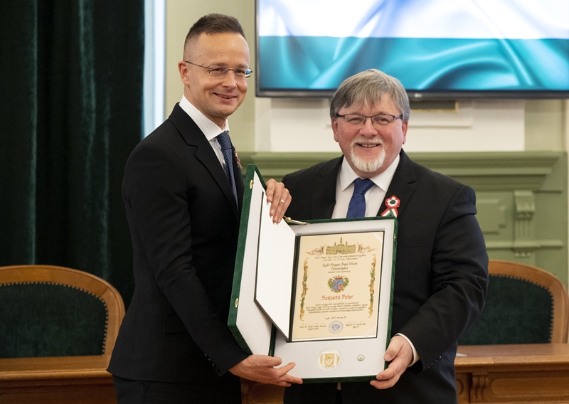Szijjártó Péter a díszpolgári címével kapcsolatban elmondta, hogy idén 25 éve lesz, hogy húszévesen belépett a városháza dísztermébe a közgyűlés legfiatalabb tagjaként.