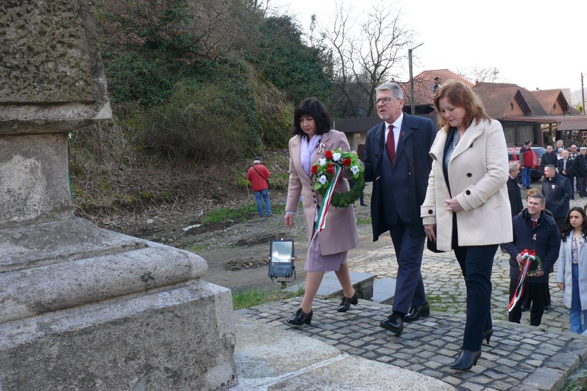 A csendes koszorúzást követően – melyen a helyiek kisebb csoportja mellett részt vettek Magyarország ungvári és beregszászi külképviseletének munkatársai is – a rendezvény a Munkácsy Mihály Magyar Házban folytatódott, ahol Korolyova Erzsébet, a KMKSZ helyi alapszervezetének elnökasszonya köszöntötte az egybegyűlteket. Majd Papp Ferenc, Magyarország Ungvári Főkonzulátusának konzulja Orbán Viktornak a külhoni magyarokhoz intézett ünnepi üzenetét olvasta fel. Ebben a miniszterelnök kiemelte: a márciusi ifjak „hitték: a szabadság nem önmagáért való, és végképp nem az erősebbek szabadsága a gyengébbek, a többségé a kisebbség felett, hanem mindenekelőtt arra szolgál, hogy általa béke, biztonság és jólét teremjen minden embernek. Személyes véráldozatukkal megpecsételt szellemi örökségként hagyták ránk, hogy nemzeti önállóságunkból senki barátságáért vagy fenyegetésére egy hajszálnyit sem engedhetünk” – áll a levélben. Mely azzal a kívánsággal zárul – akárcsak a márciusi ifjak kiáltványa –, hogy legyen béke, szabadság és egyetértés!