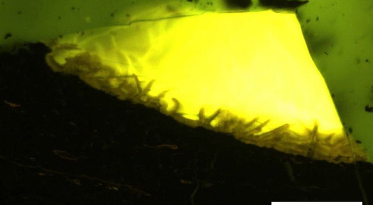 A borostyán valószínűleg tartalmaz eredeti fakéreg maradványokat