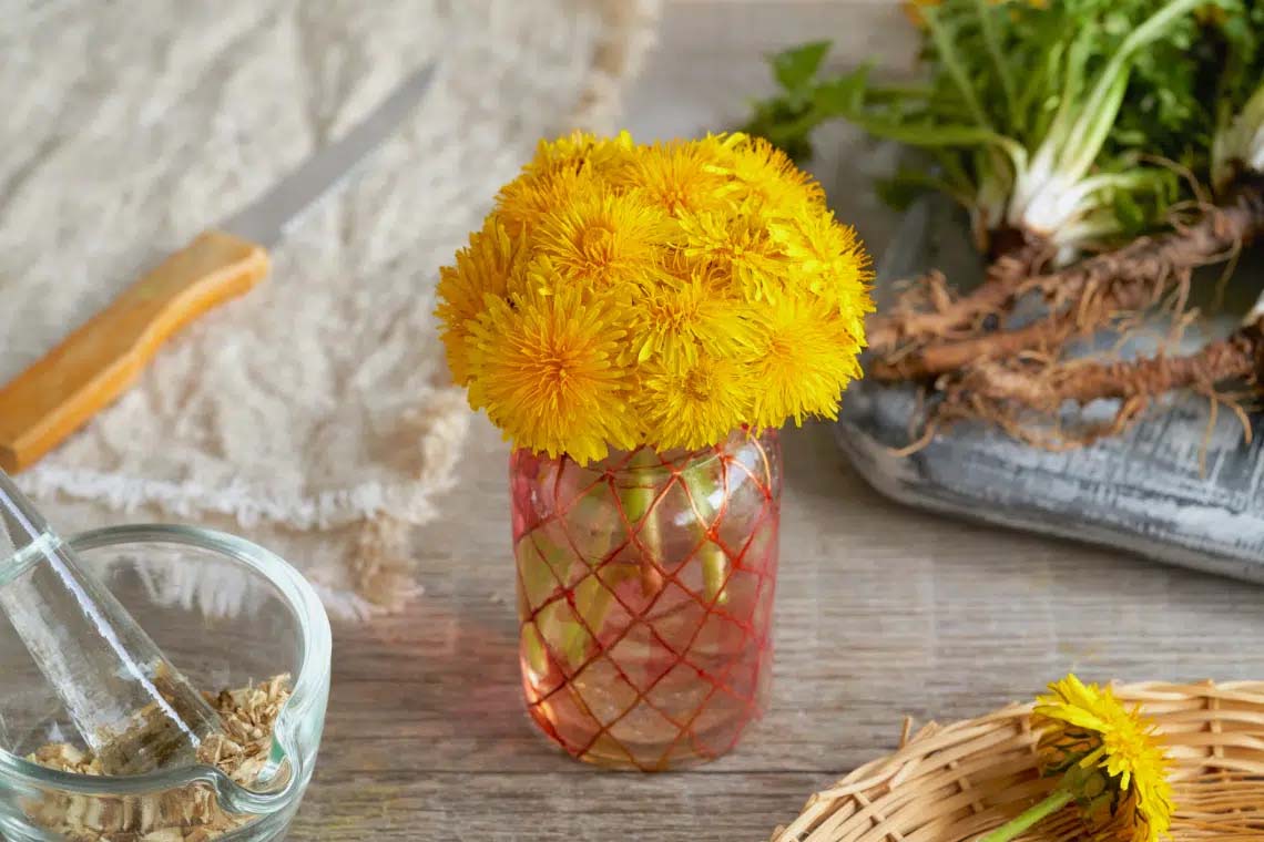 A pitypang tele van olyan ásványi anyagokkal, mint a kalcium, a kálium, a magnézium és a vas, amelyek kinyerésének a legjobb módja, ha ecetet készítesz belőle. Ehhez a projekthez gyűjts össze friss pitypangvirágokat és leveleket, öblítsd le őket jól, és tölts tele velük egy üveget úgy, hogy ne túl szorosan helyezkedjenek el benne. Ezután önts almaecetet a friss növényekre egészen addig, amíg az üveg meg nem telik. Takard le az edény tetejét viaszpapírral vagy műanyag fóliával, majd tedd rá a fedőjét. Helyezd a lefedett üveget egy sötét szekrénybe, és időnként megrázva tárold ott 4-6 hétig. Ezután szűrd le, és kész is a pitypangecet, amiből csípések enyhítője, fáradt izmok kezelője és egy házi vinaigrette alapanyaga is lehet.
