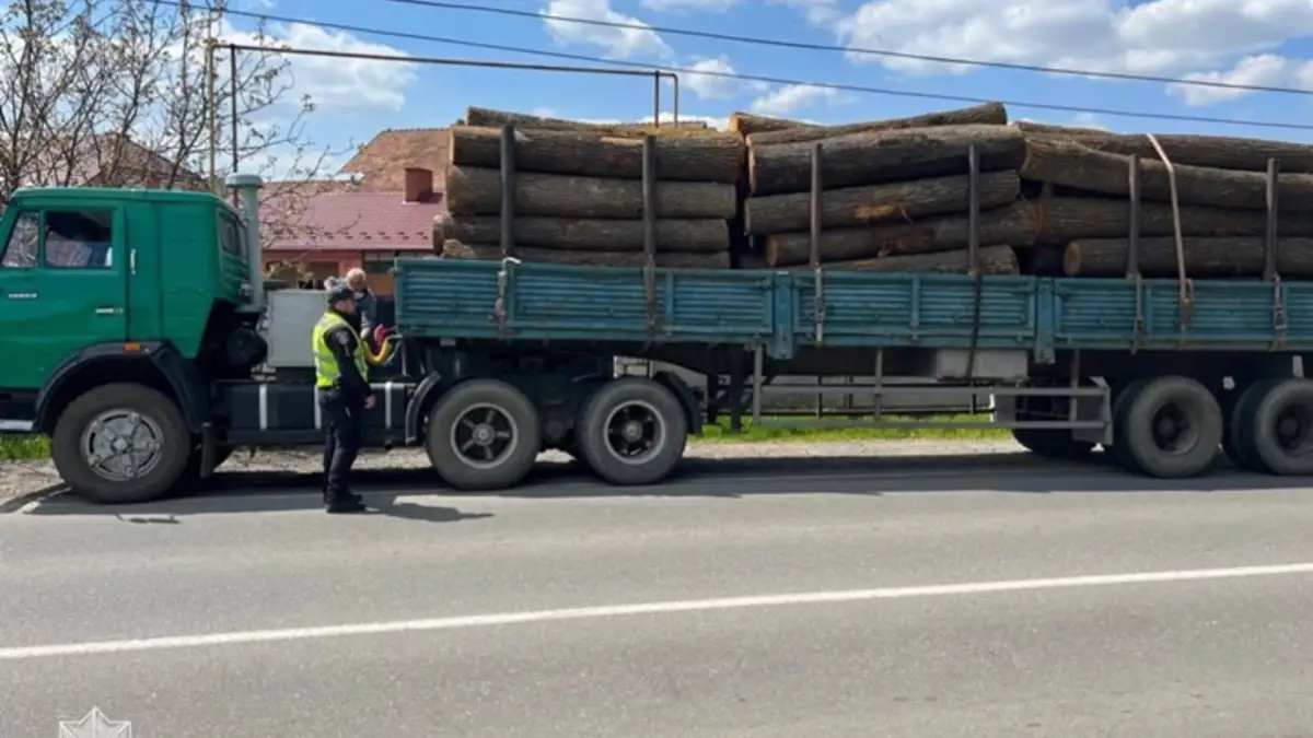 Kárpátalján a rendőrjárőrök megállítottak egy rönkfát szállító KamAZ teherautót - közölte a Kárpátaljai Járőrszolgálat Facebook-oldalán.