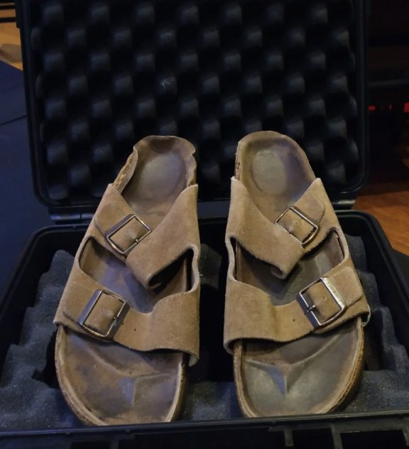 A Julien’s Aukciós Ház által közreadott képen a néhai Steve Jobs Birkenstock márkájú papucsa látható, amelyet a New York-i Hard Rock Caféban árvereztek el az Idols & Icons Rock N’ Roll címmel meghirdetett aukción - írja az MTI .
