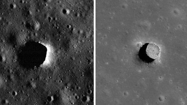 Azonban egy ideje tudni, hogy vannak olyan lávabarlangok a Holdon, amelyeknek felfelé nyitott bejáratait a Hold körül keringő műholdak jól megfigyelhetik.