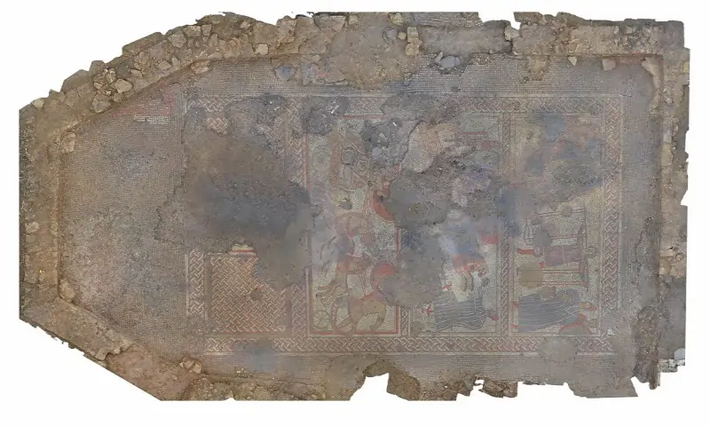 A ritka mozaikra a szakemberek egy étkező padlóján bukkantak, amelynek kora a késő római korra tehető. A geofizikai felmérések és régészeti értékelések számos épületet azonosítottak a területen, köztük egy fürdőházat, kör alakú építményeket és egy sor határárkot.